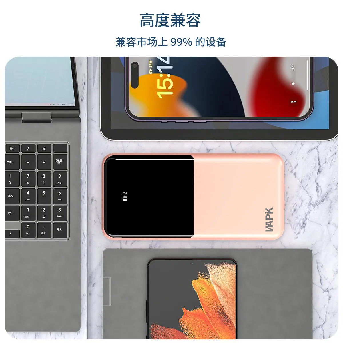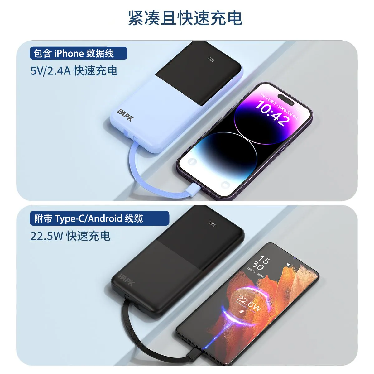 22.5W 极速快充,充电速度 “咻” 一下就上去,再也不用苦苦等待。20000mAh 超大容量,出门在外,手机、平板想充就充,再也不怕电量告急。